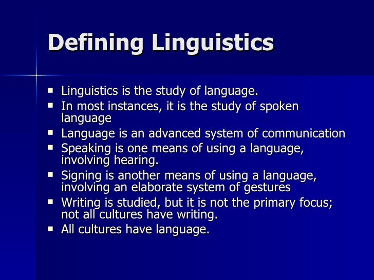 Can quality be defined? are there certain attributes that all deserving things have, or is it purely subjective? in this essay, the wirecutter's allison gibson contemplates the wealth of reasons why we would say something is "quali. Aug 04, 2017 · linguistics is the study of these knowledge systems in all their aspects: how is such a knowledge system structured, how is it acquired, how is it used in the production and comprehension of messages, how does it change over time? linguists consequently are concerned with a number of particular questions about the nature of language. Adv. 1. linguistically with respect to the science of linguistics; "linguistically interesting data". 2. linguistically with respect to language; "linguistically impaired children"; "a lingually diverse population". lingually.